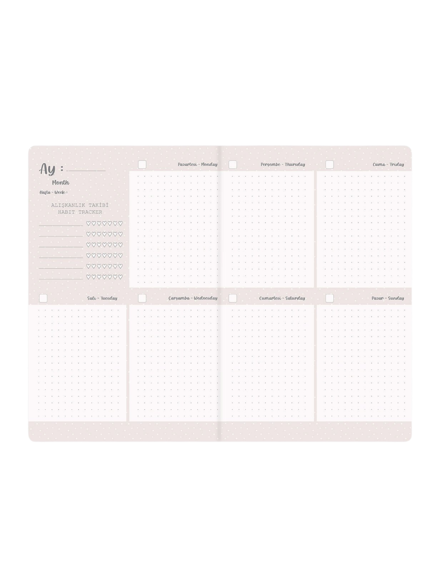 ჩვევების თვალთვალის (Habit Tracker) გვერდი ყოველი თვის დასაწყისში.