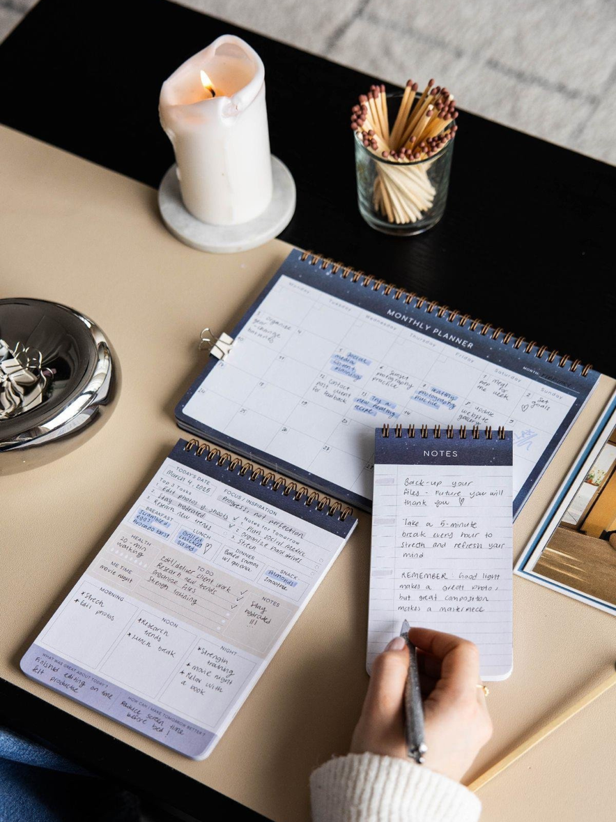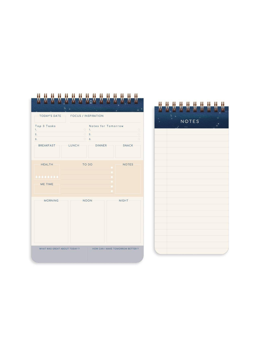 2) 13.5 x 20 სმ ყოველდღიური მგეგმავი - გთავაზობთ დაგეგმვის ინსტრუმენტებს, რომლებიც გჭირდებათ კონცენტრირებისთვის, პროდუქტიულობის გაზრდასა და ჯანსაღი ცხოვრების წესის დანერგვისთვის. ეს დეტალური მგეგმავი, რომელიც მხარს უჭერს როგორც თქვენს პროფესიულ ცხოვრებას, ასევე პიროვნულ განვითარებას, არის ღირებული ინსტრუმენტი თქვენი დროის მართვისა და ჩვევების თვალყურის დევნებისთვის.