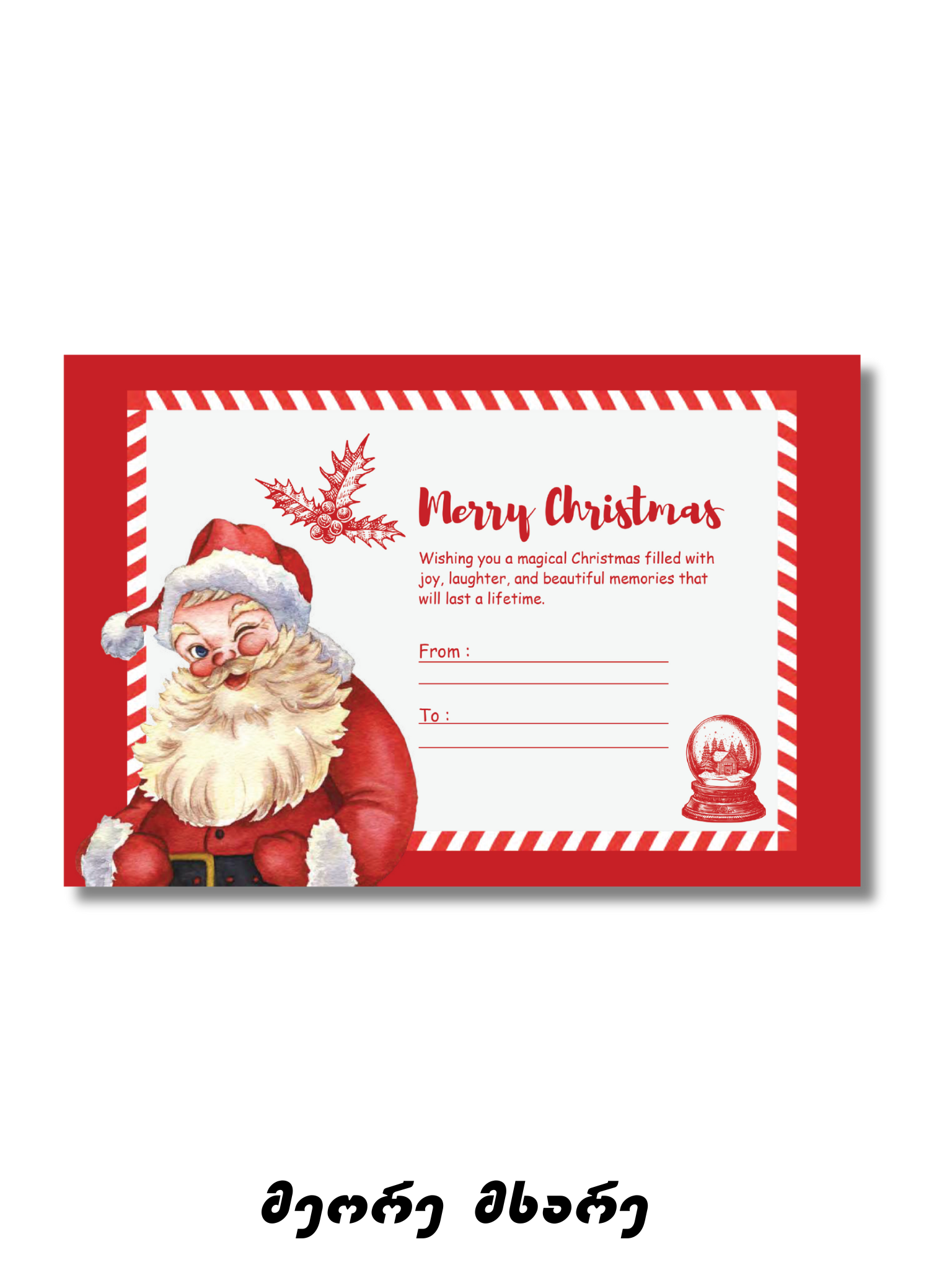 საახალწლო მისალოცი ბარათი, რომელიც ნებისმიერ საჩუქარს კიდევ უფრო ხალისიანს და სითბოთი სავსეს გახდის. 🎄